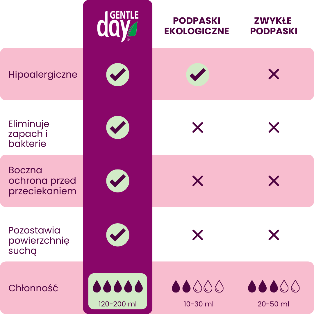 Mam bardzo wrażliwą skórę, a wkładki ekologiczne od Gentle Day są ekologiczne, wykonane z bezpiecznych dla skóry materiałów.